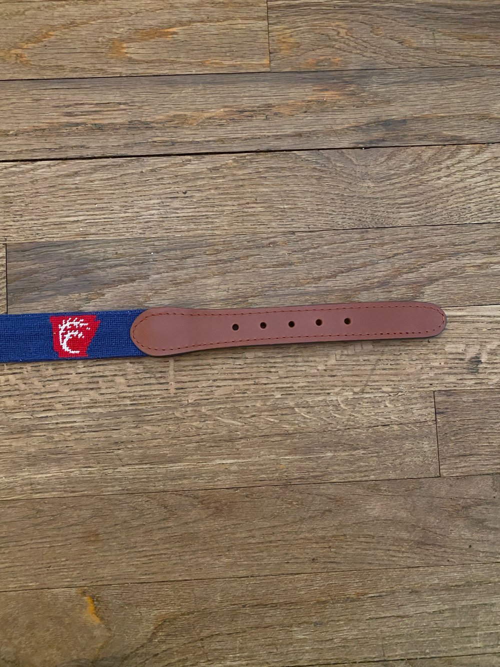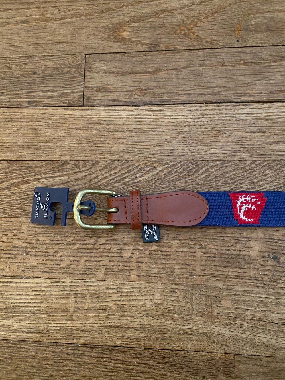 Classic navy belt with cranberry & white logo. Smathers & Branson are know for their SEC team belts.